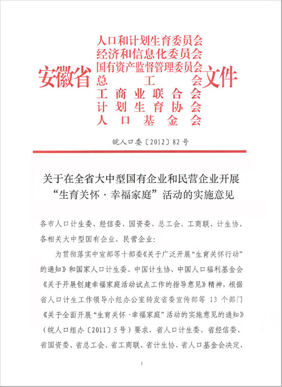 GYT was awarded one of the first model enterprises in 2012 Anhui Province“Maternity care · Happy fmilies”activity