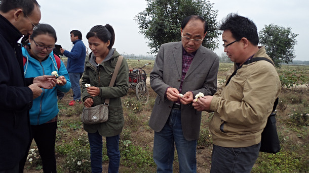 On the morning of October 28, Li Weiwen, an assistant researcher at the Provincial Academy of Agricultural Sciences Horticulture, Wang Jingcai, director of the Municipal Agricultural Promotion Center and Zhang Tao, chief from the municipal agricultural products management office, inspected the situation of Bo Chrysanthemum standardized demonstration planting. Li Weiwen collected Bo Chrysanthemum granule, Bo Chrysanthemum embryon, and chrysanthemum flowers to do some experiment data research, and discussed the related technology problems of Bo Chrysanthemum cultivated breeding and standardization planting with director Wang and chief Zhang. After Bo Chrysanthemum won the national geographical indication product protection, GYT will co-launch the related research of Bo Chrysanthemum standardized planting with Provincial Academy of Agricultural Sciences and Bozhou Municipal Council of Agriculture, and lay the foundation for promoting the development of Bo Chrysanthemum industry.