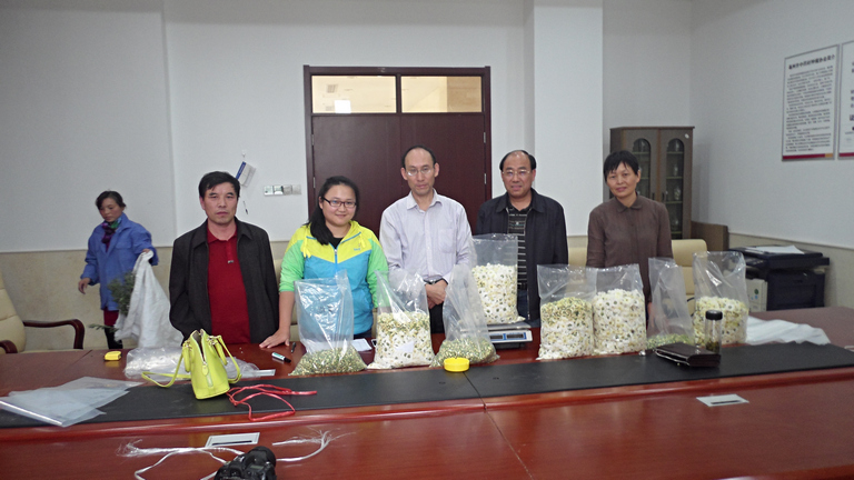 Professor Dong Ling, and other group members went to modern agricultural industrial park in Shibali town to examine on site the Chrysanthemum standardized planting demonstration base.