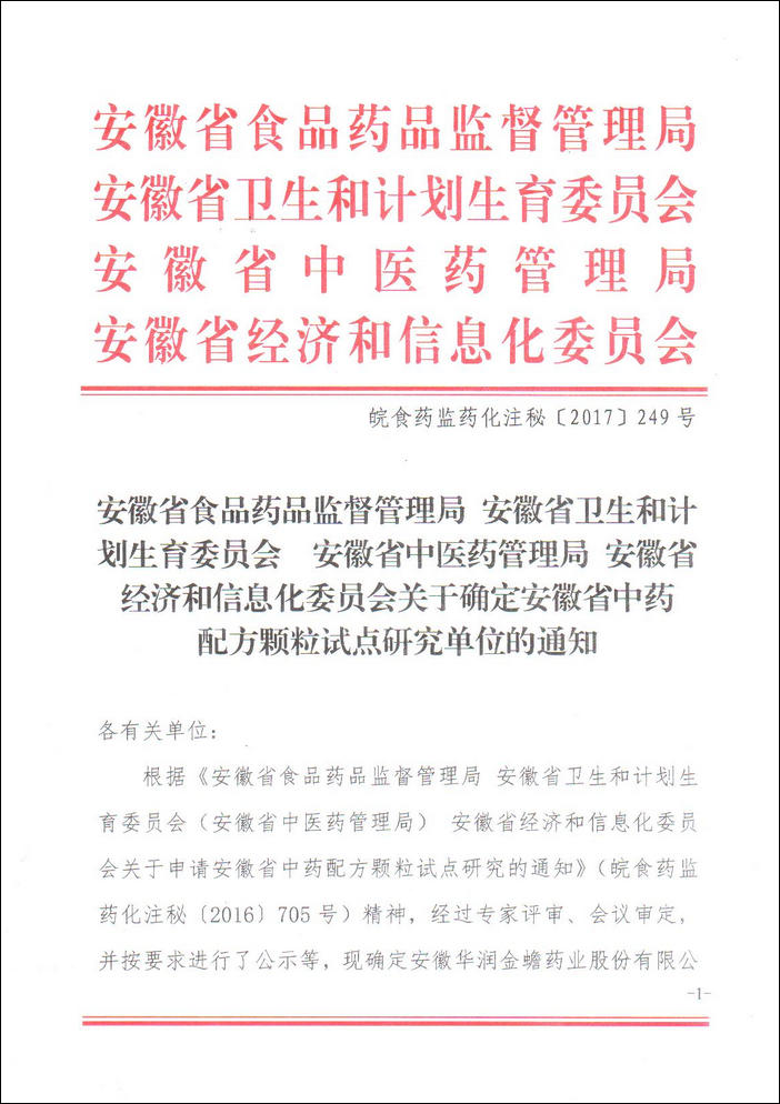 Good news: GYT was approved as Chinese medicinal granules pilot unit of Anhui province.