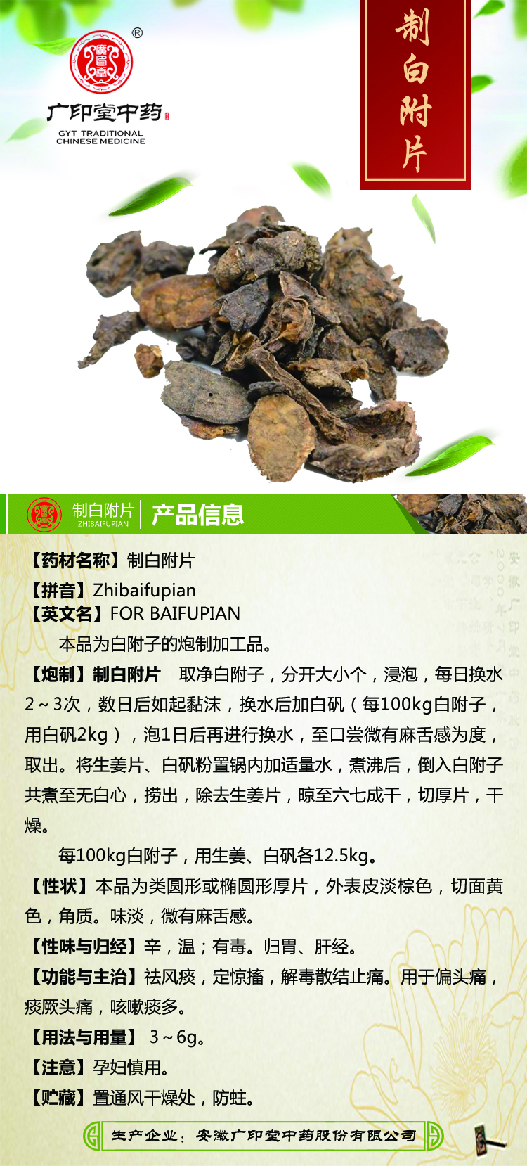 制白附片