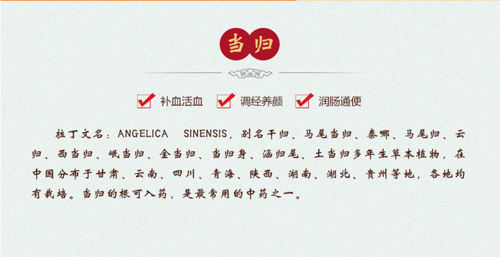 【功能與主治】 補(bǔ)血活血,調(diào)經(jīng)止痛,潤(rùn)腸通便。用于血虛萎黃,眩暈心悸,月經(jīng)不調(diào),經(jīng)閉痛經(jīng),虛寒腹痛,風(fēng)濕痹痛,跌撲損傷,癰疽瘡瘍,腸燥便秘。酒當(dāng)歸活血通經(jīng)。用于經(jīng)閉痛經(jīng),風(fēng)濕痹痛,跌撲損傷。