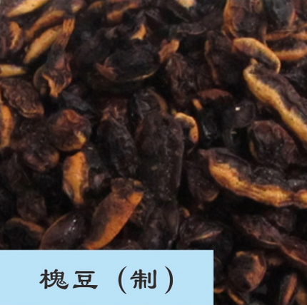 【性狀】本品呈連株?duì),長(zhǎng)1~6cm,直徑0.6~1cm。表面黃綠色或黃褐色,皺縮而粗糙,背縫線一側(cè)呈黃色。質(zhì)柔潤(rùn),干燥皺縮,易在收縮處折斷,斷面黃綠色,有黏性。種子1~6粒,腎形,長(zhǎng)約8mm,表面光滑,棕黑色,一側(cè)有灰白色圓形種臍;質(zhì)堅(jiān)硬,子葉2,黃綠色。果肉氣微,味苦,種子嚼之有豆腥氣。