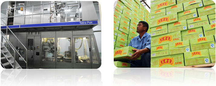 公司引進(jìn)全球知名包裝企業(yè)瑞典利樂(lè)公司(Tetra Pak)開發(fā)利樂(lè)A3/高速線,是目前世界最快速生產(chǎn)線,每小時(shí)可生產(chǎn)24,000包的無(wú)菌利樂(lè)磚個(gè)人裝。最新智能自動(dòng)化生產(chǎn)線,與公司自備太陽(yáng)能水處理凈化設(shè)備組合,高速低耗,節(jié)能環(huán)保,食品安全水平高(獨(dú)特的無(wú)菌工藝已在FDA登記備案)。