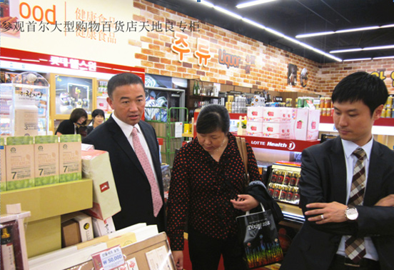 隨后高董事長還參觀了天地良公司展廳以及首爾當?shù)卮笮唾徫锇儇浀晏斓亓贾晔綍绠a(chǎn)品的專柜。