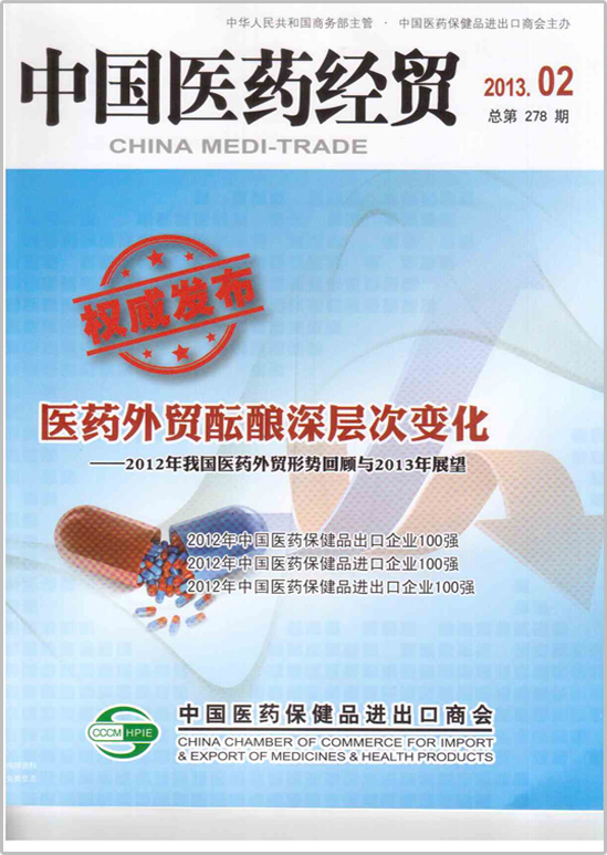 安徽廣印堂中藥股份有限公司被安徽省工商聯(lián)、省經(jīng)信委、省商務(wù)廳、省工商局、省地稅局聯(lián)合評選為2012年度中藥材及飲片出口20強(qiáng)企業(yè),消息被刊登在中國醫(yī)藥保健品進(jìn)出口商會所發(fā)布的權(quán)威期刊《中國醫(yī)藥經(jīng)貿(mào)》2013年第2期(總第278期)中。