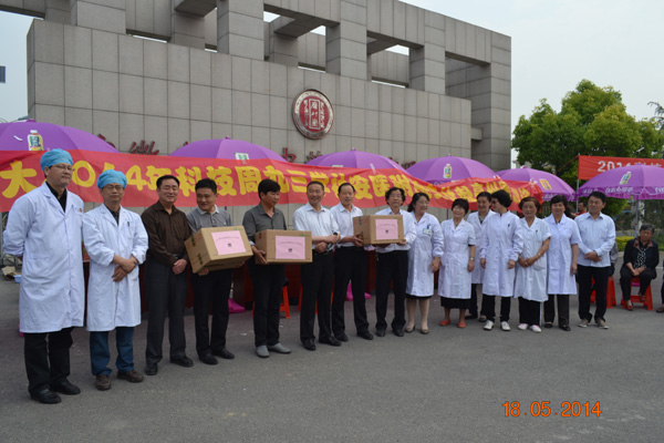5月18日,省九三學(xué)社安醫(yī)大附院支社為響應(yīng)全國(guó)科技周活動(dòng),組織附院10余位專(zhuān)家來(lái)亳參加大型義診。這次活動(dòng)由廣印堂承辦,得到譙城區(qū)科技局、衛(wèi)生局、宣傳部支持,市政協(xié)副主席、工商聯(lián)主席張國(guó)芳出席啟動(dòng)儀式并致祝詞,安醫(yī)大統(tǒng)戰(zhàn)部部長(zhǎng)祖云等領(lǐng)導(dǎo)親臨現(xiàn)場(chǎng)。義診地點(diǎn)設(shè)在廣印堂公司大門(mén)外廣場(chǎng),前來(lái)咨詢(xún)、檢查、就診的群眾、工業(yè)園區(qū)員工達(dá)500余人次,專(zhuān)家組為社區(qū)群眾做心電圖、測(cè)血壓、開(kāi)處方、贈(zèng)藥品,受到群眾的熱烈稱(chēng)贊和好評(píng),達(dá)到了送健康、送科技的目的。