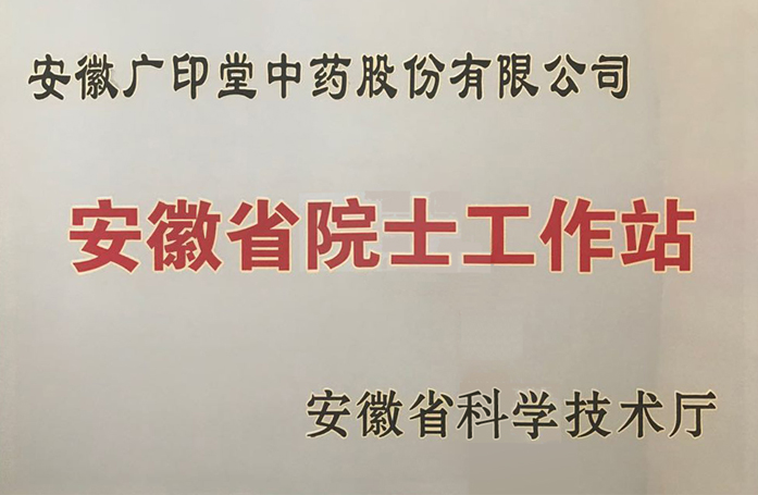 安徽省科技廳批準(zhǔn)并授予廣印堂中藥公司“安徽省院士工作站”牌匾